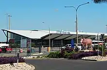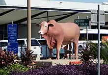 On the roundabout outside the airport is one of the seven Big Bulls statues that decorate Rockhampton, which regards itself as the Beef Capital of Australia. The statue outside the airport depicts a Droughtmaster bull, an important breed in the local area.[72][73] The Big Bulls are listed as one of Australia's big things.[74]