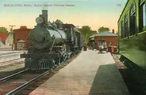 Rockland station is a railway station located at Union and Pleasant Streets in Rockland, Maine. It is the eastern terminus of the Rockland Branch, a state-owned track connecting Rockland and Brunswick. The historic station building was built in 1917 by the Maine Central Railroad, and was listed on the National Register of Historic Places in 1978 as Rockland Railroad Station. It presently houses a restaurant, and served for a time as Rockland's city hall. The line is presently inactive, having most recently had seasonal passenger service from 2004 to 2015 operated by the now-defunct Maine Eastern Railroad. The line would then be leased to the Central Maine and Quebec Railway (CMQ) from 2015 to 2020, then to Canadian Pacific Railway following its purchase of CMQ in 2020.[3] CMQ originally planned to reintroduce service on the line, but not with excursions.