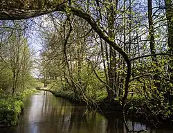 The Vissel joins the Rodau near Bothel. This stream rises in Visselhövede in one of the biggest springs in the Lower Saxon Plain and, at its mouth, carries around 25% more water than the Rodau, hence it is actually the main headstream of the Rodau.