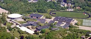 The school was founded by educator William Sanford Rogers in 1873 and was named for him.[2] The original Rogers High School building was on Church Street, the school moved to a building on Broadway in 1905 and the old building became the Thayer School and later a Boys and Girls Club. In 1957, the school moved to its current location on Wickham Road and the old Broadway building became the location for Thompson Middle School. An expansion to the school, The Newport Area Career and Technical Center, was completed in 1968.[3]