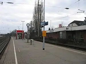 Roisdorf station is a through station in the district of Roisdorf of the town of Bornheim in the German state of North Rhine-Westphalia. It was opened on 1 March 1844 on the Left Rhine line, which was opened between Cologne and Bonn on 15 February 1844.[5] It has two platform tracks and it is classified by Deutsche Bahn as a category 5 station.[1]