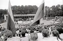 Roko maršas (The March of Rock) was a rock music festival, organized in various cities of Lithuania. It was held in 1987–1989. It was resurrected in 1996 and 1997. The first festivals were organized while Lithuania was still under the Soviet occupation. They became part of the Singing Revolution, spreading ideas of the Lithuanian independence movement among the youth. It helped to awaken the younger generation from Soviet-era apathy and inspire them.[1] In total, the three first festivals attracted an estimated 130,000 spectators.[2] The festivals became a rehearsal for the mass protest rallies by the Sąjūdis that lead to the restoration of Lithuania's independence in March 1990.[3]