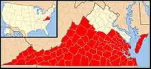 TerritoryCentral and Southern Virginia, as well as the Eastern Shore of Virginia