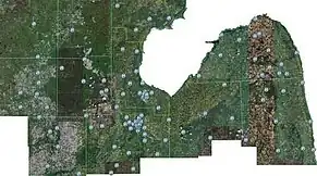 The Saginaw Diocese is located in Central Michigan and The Thumb and consists of eleven counties, covering 6,955 square miles (18,010 km2). The population is roughly an even split between urban and rural. The three major urban centers are Saginaw, Bay City, and Midland.
