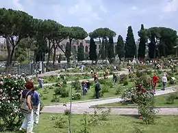 Rome Rose Garden, also known as Il Roseto, is a public garden in Rome, Italy, located opposite the Circus Maximus on the Aventine Hill.[1] The park was established in 1931. Over 1100 varieties of roses are grown there, many of them gifts from countries around the world. The Rome Rose Garden covers 10,000 m square and each section has rose varieties characteristic of, or grown in, the respective variety. The park also has an experimental section where new varieties of roses are tested for their suitability for public and private gardens in Italy.
