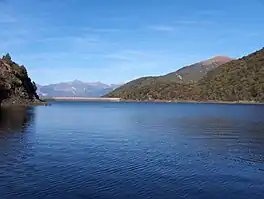 The Roncovalgrande Hydroelectric Plant, also known as the Delio Hydroelectric Plant, is located 3 kilometres (1.9 mi) north of Maccagno in the Province of Varese, Lombardy, Italy. Using the pumped-storage hydroelectric method, the power plant has an installed capacity of 1,016 megawatts (1,362,000 hp). The power plant was complete in 1971 and the last generator operational in 1973. During construction, the upper reservoir, Lago Delio, was expanded in capacity with two gravity dams; a northern and southern, 28.5 metres (94 ft) and 36 metres (118 ft) in height, respectively. The lower reservoir, Lago Maggiore, already existed. The power plant itself is located underground in between Delio and Maggiore. To produce electricity, water is released from the upper reservoir to the power plant via two 1,100 metres (3,600 ft) long penstocks. At the power plant, eight four-stage Pelton turbine-generators generate electricity. Power generation occurs during periods of high energy demand and when energy demand is low, pumping usually occurs. The pumps are on the same shaft as the Pelton turbines and send water from the lower to the upper reservoir to serve as stored energy. Later on, this water will be sent back down to the power station and the process will repeat. The difference in elevation between the upper and lower reservoirs affords a hydraulic head of 736.25 m (2,416 ft) and Lago Delio has a usable storage capacity of 10,000,000 cubic metres (8,100 acre⋅ft).[1][2]