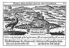 The Calvinist Ysenburg-Büdingen played a crucial role in permitting Protestant exiles to take up residence in the castle starting in 1700. It became a long-standing sanctuary for those facing religious persecution, with notable figures such as the Swiss mystic Ursula Meyer engaging in 156 debates here between 1715 and 1719. It also offered refuge to unhoused people, including Jews and Gypsies, who engaged in various craft activities within the castle's rooms. By the late 18th century, a woolen goods manufactory operated within the castle's premises.[15] In 1736, Count von Zinzendorf and his Herrnhut Brethren community moved in, transforming the castle into a widely-visited place of pilgrimage. Just two years later, they found the site too cramped for their needs, leading to the establishment of the Herrnhaag settlement on a nearby hill. Starting in 1750, many of these settlers emigrated to America and other countries.[16]