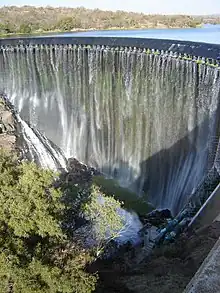 Roodeplaat Dam is a concrete arch dam situated in South Africa on the Pienaars River (also known along parts of its length as the Moretele River and Moreleta Spruit[1]), a tributary of the Crocodile River, which flows northwards into the Limpopo River. The dam is a warm monomictic impoundment with stable thermal stratification during the summer.[2]