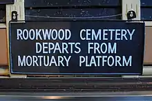 The last trains that ran funeral processions all but ceased in the late 1930s. Following this, they were only used for visitors on Sundays and Mother's Day.[7] The service was briefly revived during World War II during petrol rationing. The last railway timetable was recorded in 1947 and read Sydney 2.17 p.m. to Strathfield 2.33 p.m. to Rookwood #1, 2.50 p.m.[8]