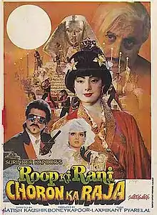 Roop ki Rani Choron Ka Raja (transl. The Queen of Beauty and the King of Thieves) is a 1993 Indian Hindi-language action comedy[3] film starring Sridevi, Anil Kapoor, Anupam Kher, Johnny Lever and Jackie Shroff in special extended role. It was the highest-budget Hindi film at that time. The film was directed by Satish Kaushik and written by Javed Akhtar. The project, announced in 1987, was initially directed by Shekhar Kapur, who left the project halfway through; he was subsequently replaced by Satish Kaushik.