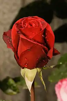Rosa 'Camp David' is a red hybrid tea rose developed by Mathias Tantau, Jr. in 1984.