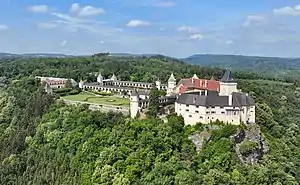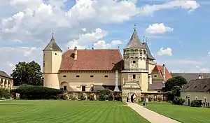 Rosenburg is a castle in the municipality Rosenburg-Mold, Lower Austria, Austria. Rosenburg is on a cliff above the valley of the River Kamp at an elevation of 345 metres (1,132 ft) above sea level.[1] It is one of Austria's most visited Renaissance castles. It is situated in the middle of a nature reserve - the Naturpark Kamptal[2] - which adds to its appeal. There are various castles and fortifications in Austria and Germany that bear the name "Rosenburg", but if people use the term without further specifications, it may be understood that they refer to this site in Lower Austria. The well-known Austrian folk song "Es liegt ein Schloss in Österreich" ("There is a castle in Austria") is often assumed to refer to the Rosenburg.