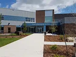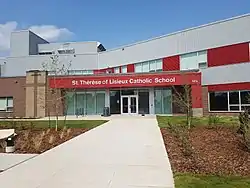 Land was allocated for two schools at the centre of the neighbourhood as part of the planning phase for Rosewood.[4] On October 22, 2013, the provincial government announced funding for four new P3 facilities in Saskatoon, including a joint-use public/separate school facility in Rosewood.[13] Greater Saskatoon Catholic Schools revealed in June 2015 that the division's new elementary school in Rosewood would be named after Thérèse of Lisieux,[14] while Saskatoon Public Schools announced in October 2016 that its new elementary school would be named after Colette Bourgonje.[15] Both schools were completed ahead of the 2017-2018 school year.[16]