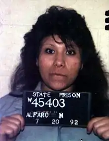 - ↑ "Her Future Grim, Alfaro Looks Back : Interview: Facing a death sentence for the murder of a 9-year-old girl, the O.C. woman denies guilt, blames drugs and copes with memories". The Los Angeles Times. 14 June 1992.