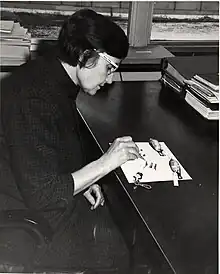 Laybourne earned her B.A. from Meredith College in 1932 and her M.S. in plant ecology from George Washington University in 1951 with a thesis on mosses.[5] She worked for the North Carolina State Museum of Natural History in its taxidermy and exhibit departments in 1932, as well as the National Fisheries Laboratory, the United States National Museum from 1944 to 1946, and the Bird and Mammal Laboratories of the U.S. Fish and Wildlife Service from 1946 to 1974, before retiring and joining the National Museum of Natural History as a research associate.[6] While at the National Museum of Natural History, Laybourne pioneered the study of forensic ornithology.[5] She worked as a feather specialist for the Smithsonian Institution.[7]