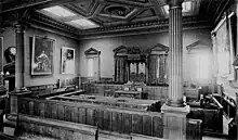 In addition to the judge, the Royal Court includes the jurats. They are unpaid lay people, aged 40 or more, who have been elected by an electoral college. They hold the office until the age of 72.[3] The jurats decide issues of fact in criminal and civil trials (except criminal assizes, when a jury is empanelled), hand down sentences in criminal trials and award damages in civil trials.[4]