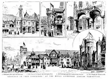 The theme of the exhibition was the Arts of Peace and War with trophies of war and mementoes of famous explorations lent by Queen Victoria.[1] It included life-size depictions of "Old Liverpool" that were reproduced for The Graphic.[2]