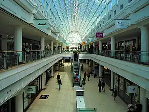 It in located in the centre of the town on the main street, The Parade. Opened in 1988 by Queen Elizabeth II[1] at a cost of £35 million, there is a seven-storey car park adjacent to it and the town's bus stops are nearby.