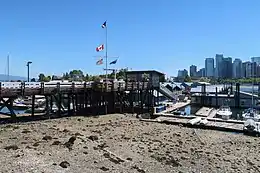 The Royal Vancouver Yacht Club (RVYC) is a yacht club located in Vancouver, British Columbia. Royal Vancouver Yacht Club currently operates two marinas, the one at Jericho Beach in English Bay and another in Coal Harbour. The Jericho site includes a clubhouse, two restaurants, and berths enough for 350 as well as a dinghy dock. In 2017 the award-winning Dock Building was completed, designed by Michael Green Architecture, providing offices for the Harbour Master, instruction and amenity space and workshops to maintain boats, sails, and gear.[1] The Coal Harbour site has approximately 350 berths, some with covered moorage, and is the location of the floating restaurant called The Mermaid.[2] The club also has seven offshore stations in BC waters.