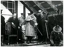 The Prince of Wales at Rotorua on his 1920 visit to New Zealand. On the left is Sir Joseph Ward, and on the right is Māui Pōmare. - 1927: Duke and Duchess of York[1]