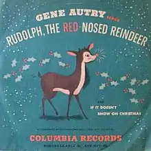 The song was also performed on the December 6, 1949, Fibber McGee and Molly radio broadcast by Teeny (Marian Jordan's little girl character) and the Kingsmen vocal group. The lyrics varied greatly from the Autry version.[11] Autry's recording sold 1.75 million copies its first Christmas season and 1.5 million the following year.[12] In 1969, it was awarded a gold disk by the RIAA for sales of 7 million, which was Columbia's highest-selling record at the time.[13] It eventually sold a total of 12.5 million. Cover versions included, sales exceed 150 million copies, second only to Bing Crosby's "White Christmas".[14][15]