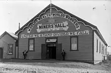 Plans for the hall were begun in 1905 and the unionist and politician Bob Semple was instrumental in planning and getting the hall built. It was built on the corner of Mills and McGowan Streets and was opened on 4 December 1908 by Semple.[2] A train brought people from Greymouth to Runanga for the opening.[3] It was the country's first co-operatively built building with input from the State Miners' Union, the mines, Greymouth business people and the state. The building was designed by the mines engineer George Millar and built by Walter Murray of Cobden.[1][2]