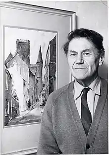Retiring for a second time in 1970 he spent much of the rest of his life either gardening or painting, holding numerous one man exhibitions of his watercolours up and down the country - in London, Newcastle, Durham, Leicester, York, Oxford, Plymouth, Salisbury, Winchester, and Wetton in the Peak District. He liked to paint outside whatever the weather, and his favourite subjects were Venice, the Lake District, Devon/Cornwall, the North East, and the chalk streams and landscapes of Hampshire. He was a member of the Art Workers Guild. His ability to paint represented a victory over his earlier ill health, which caused considerable loss of feeling in his hands and feet. He had to re-learn to write, and to the end of his life continued to guide and steady his right hand with his left.
