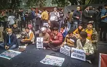 ![]() Rupjyoti Kurmi (in the centre)holding poster | |