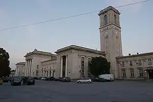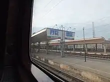 Ruse Central railway station (Bulgarian: Централна железопътна гара Русе, romanized: Tsentralna zhelezopatna gara Ruse) is the main station serving the city and municipality of Ruse, the fifth most populous city in Bulgaria. After the opening of the Danube Bridge in 1954, a new grand Stalinist Central Railway Station was envisioned for the city of Ruse. The new station opened in late 1955 temporarily becoming the biggest on the Balkan peninsula featuring three platforms, with four tracks and one passing track.