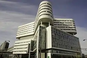 Rush University Medical Center has 664 patient beds at its 14-story, 830,000-square-foot location on Chicago's Near West Side. The hospital is known for its butterfly-shaped tower, designed to handle mass casualty events.[8] Rush offers more than 70 residency and fellowship programs in medical and surgical specialties and subspecialties. It is also the largest nongovernmental employer on Chicago's near West Side, with nearly 10,000 employees and annual spending of over $550 million.[9]