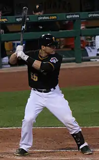 On November 29, 2012, Ken Rosenthal reported that the Pittsburgh Pirates had signed Martin for two years and $17 million.[27][28] The deal became official on November 30.[29][30] On June 4, 2013, Martin made his first start and appearance at right field. On June 8, 2013, Martin hit his 100th career home run.