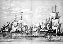 Vityaz circumnavigated the world from 1870 to 1874 under the command of Captain P.N. Nazimov (ru). Sailing from St. Petersburg on a survey mission, Vityaz crossed the Atlantic Ocean and passed through the Strait of Magellan, accompanied by the ethnologist Nicholas Miklouho-Maclay. A planned stop at Rapa Nui was cancelled due to political instability, but the Vityaz did stop at Mangareva from July 7–12, 1871, during which time Miklouho-Maclay spoke to Rapa Nui natives about their island.[3] On September 20, 1871, Vityaz deposited Miklouho-Maclay at Astrolabe Bay on New Guinea, where he remained conducting research work for fifteen months.[4][5] On 30 August 1863, Vityaz rescued all on board the German barque Charlotte Christine, which had been wrecked whilst on a voyage from Vladivostok, Russia to Chefoo, China.[6] Vityaz explored the strait between Long Island and New Guinea, which as a result was named the Vitiaz Strait. After stops in Japan, China, India, and the Arabian Peninsula, Vityaz passed through the Suez Canal, the Strait of Gibraltar, and the English Channel and returned to Kronstadt.