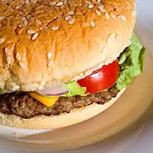 In 2019, with a target audience of 18- to 24-year-olds, Kepak launched its first Rustlers vegetarian burger, a Moroccan felafel patty, named on the packet as "Moroccan vegetarian burger, carrot & coriander falafel with mango chutney and yogurt and mint sauce".[7][8] In November 2021 in Tesco, Tesco One Stop and Booker outlets,[8] Kepak launched the Rustlers Meatless Maverick, a meat-free burger.[9] However, although the burger is made from pea protein, a cheese slice is included in the pack, so that the package is not wholly plant-based or vegan. It was designed in 2021 to mimic the brand's Quarter Pounder SKU, and to be sold at the same price as the Rustlers original meat-based burgers.[8]