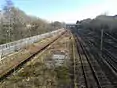 The first Rutherglen station was opened on the Caledonian Railway's line to Glasgow on 1 June 1849,[2] or possibly 1842. The side platforms existed beneath today's footbridge at the base of the triangular junction.[3] Serving about 70 passenger trains daily, it was replaced on 31 March 1879 by the second one stretching below the Farmeloan Road bridge.[2][4][5] This, and subsequent stations, had both side platforms and island platforms. The third station served the west side and base of the triangle near the respective angle.[6] The fourth station at the mid east side of the triangle complemented the third one.[7] Despite the three rebuilds, access remained a concern.[8]
