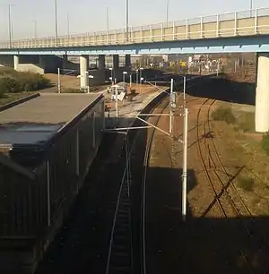 During 2010, the M74 extension included the motorway flyover at the north end of the platform.