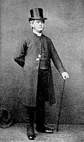 Barrington adopted his stage name by 1874[16] and made his professional debut with Henry Neville's company at the Olympic Theatre that year, playing the role of Sir George Barclay in Tom Taylor's Lady Clancarty, and then in The Ticket-of-Leave Man (by Taylor) and as LaFleur in The Two Orphans, among others.[2] In July 1875, Barrington was playing Jules Frantz in Lessons in Harmony at St. George's Hall, London. A review in The Era reviewed the young actor's performance: "A good figure and expressive face were known to be among his advantages, but it was, perhaps, not suspected that he was a capital vocalist, a skilled musician, and an actor of remarkable ease and animation."[17] Later that year, he was hired to appear in the touring company of Mr and Mrs Howard Paul.[18] The company played a hectic schedule of entertainments.[19]
