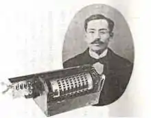 Ryōichi Yazu and his Patent Yazu Arithmometer.