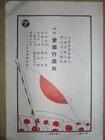 In 1936, NHK started radio program "Kokumin Kayō" (国民歌謡, lit. "National Kayō") to compete with ryūkōka, which was under the influence of "Ero Guro Nansensu", but it soon began to air war songs around July 1937.[18] The program was renamed to "Warera no Uta" (われらのうた, lit. "Our Songs") in 1941 and then "Kokumin Gasshō" (国民合唱, lit. "National Group Singing") in 1942.[18] The songs during the war were called "Senji Kayō" (戦時歌謡). During the war, many musicians were forced to write war songs. Yuji Koseki composed many war songs and was later criticised as a war collaborator, though he seemed to be touched with remorse.[25] Koseki composed "Roei no Uta" (露営の歌, lit. "Song of the Camp") released in 1937. Although the song was a B-side song, it sold 600,000 copies.[26] The 1937 song "Aikoku Kōshinkyoku" (愛国行進曲, lit. "Patriotic March") sold 1,000,000 copies.[27] However, Japanese jazz musicians such as Ryoichi Hattori seemed to be vigorless to compose war songs.[28] His son Katsuhisa Hattori claimed that he was not an antinationalist and he technically were hardly not able to compose war songs even if they wanted to make those because Japanese war songs were musically enka.[28]
