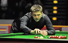Day advanced to the quarter-final stage of the Shanghai Masters by overcoming Neil Robertson and Mei Xiwen, both 5–2, before losing 3–5 to Mark Selby.[35] He won the first four frames against Mark Allen in the third round of the UK Championship, but went on to lose 6–5.[36] His second quarter-final of the season came at the German Masters and he was defeated 2–5 by Martin Gould.[37] At the World Grand Prix, Day overcame Stuart Bingham, Michael White and Shaun Murphy all 4–2. In the semi-finals he was 3–4 down to Marco Fu, but recovered from needing four snookers in the eighth frame to level and went on to win 6–4.[38] In Day's first ranking event final since 2008 he was 9–3 behind Barry Hawkins and, though he pulled it back to 9–7, he was defeated 7–10.[39] Day lost in the final of the non-ranking Championship League 0–3 to John Higgins.[40] A 4–2 win over Neil Robertson saw Day play in the semi-finals of the Gibraltar Open and he was beaten 4–2 by Judd Trump after leading 2–0.[41] Day was a seeded player for the World Championship, but lost 4–10 Xiao Guodong in the first round and once again blamed his lack of concentration for the early exit.[42]