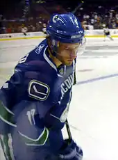Ryan James Kesler (born August 31, 1984) is an American former professional ice hockey center. Selected in the first round, 23rd overall, by the Vancouver Canucks in the 2003 NHL Entry Draft, Kesler spent the first 10 years of his National Hockey League (NHL) career with the Canucks after which he was traded to the Anaheim Ducks in 2014 with whom he spent the rest of his career.[1] He is best known for being a two-way forward and his agitating style of play, winning the Selke Trophy in 2011.[2][3]