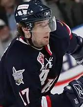 The 2004–05 NHL lockout, which cancelled the 2004–05 NHL season, forced Kesler to spend the entire season with the Moose.[27] With Manitoba, Kesler emerged as one of the Canucks' top prospects. Midway through the season, Kesler was named to the PlanetUSA All-Star team for the 2005 AHL All-Star Game where he helped PlanetUSA defeat Team Canada for the first time in five years.[28][29] Kesler finished third in team scoring with thirty goals and 57 points to be named the Moose's Most Valuable Player.[30] Kesler added an additional nine points in 14 playoff games as the Moose advanced to the Western Conference finals before being swept by the Chicago Wolves.[31]