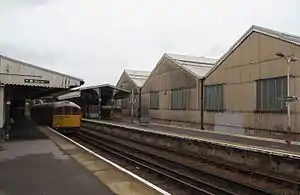 Viewed from the footbridge, looking at platforms 2 and 3, along with the depot building