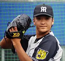 During postseason, he was the sole Hanshin player selected to join the Samurai Japan roster and participate in a 3-game series against Chinese Taipei.[15] He contributed to Japan's victory (4–2) on the November 9 game by striking out 2 batters in the 7th inning, throwing his fastest at 151 km/h.[16]