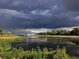 Rzhyshchiv River Port also called Rzhyshchivsky Port[3] is a port enterprise on the Dnieper River, and is located in the city of regional importance Rzhyshchiv. There is a coffee shop that was formerly a station building. Rzhyshchiv has always been considered one of the most important Dnieper ports, and by the middle of the 19th century the cargo turnover here was higher than in the Kyiv River Port and was second only to Dnipropetrovsk River Port (formerly called Katerynoslav). The river station here is typical of the 70s, but rare for small towns. The cargo port has cranes, handles sand, building materials,[2] and so on.