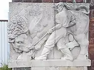 On 19 December 1943, Ferenc Deák Literary and Art Circle was formed in Zalaegerszeg with the participation of 28 artists, including Sándor Boldogfai Farkas. He didn't fight in the Second World War, but after the Soviets occupied Budapest in 1945 he was arrested by them; he was released only months later. He worked and lived at the Art Colony on Százados Avenue (Százados úti művésztelep). The Second World War devastated great part of the buildings of Budapest: in 1957 the Hungarian sculptors Sándor Boldogfai Farkas, Ödön Metky and János Sóváry carved replicas in the New York Caféof the damaged allegorical sculptures of Thrift and Wealth, America and Hungary. For a while in the 1960s, his favorite subjects were animal life, holy persons, and creatures of Greek mythology. When the Payphone was introduced in Hungary Sándor Boldogfai Farkas designed the first coin (called "Tantusz") that used for these public machines.[8][9][10]