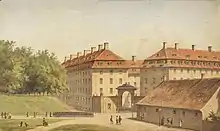 The new barracks were met with opposition from the citizens of nearby Frederiksstaden who had lost an extra source of income.[2] From 1775 the buildings were instead used as a military hospital (Frederiks Plejehus og Almindelig Hospital) but then in 1785 they once again came to serve as barracks. When space became too sparse in the facility, the Laurel House in Rosenborg Castle Gardens was converted into a new home for the Royal Life Guards, Rosenborg Barracks, which was inaugurated in 1786 to a design by military engineer Ernst Peymann.