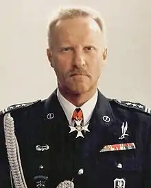 Brigadier General Sławomir Petelicki (13 September 1946 – 16 June 2012) was the first commander of the Polish special forces unit GROM from July 13, 1990, until December 19, 1995. Later, he was the head of the Foundation of Former GROM Soldiers.[1]