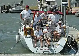 A photo of the crew of the S.V. Cynthia Woods before their 2008 departure for the Regata de Amigos in Mexico.