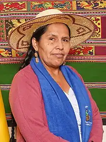 Sabina Orellana Cruz (born 1970) is a Bolivian unionist and politician of Quechua origin serving as Minister of Cultures, Decolonization and Depatriarchalization since 20 November 2020.[1] She is a member of the Bartolina Sisa Confederation of indigenous women.[2][1]