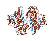 - ↑ Andi B, Xu H, Cook PF, West AH (November 2007). "Crystal structures of ligand-bound saccharopine dehydrogenase from Saccharomyces cerevisiae". Biochemistry. 46 (44): 12512–21. doi:10.1021/bi701428m. PMID 17939687.